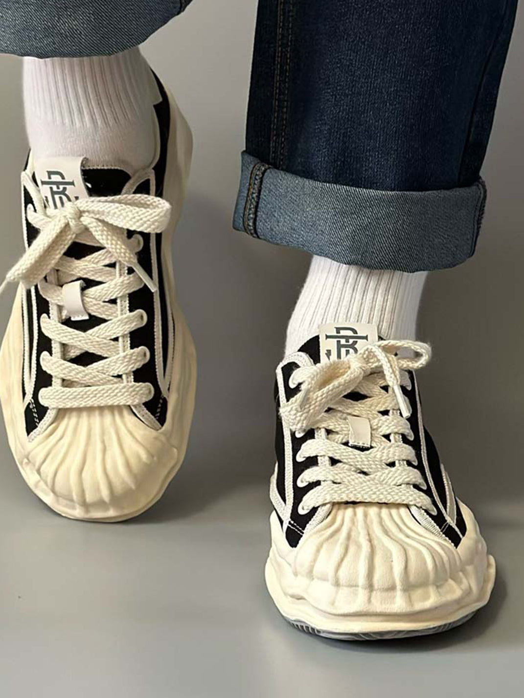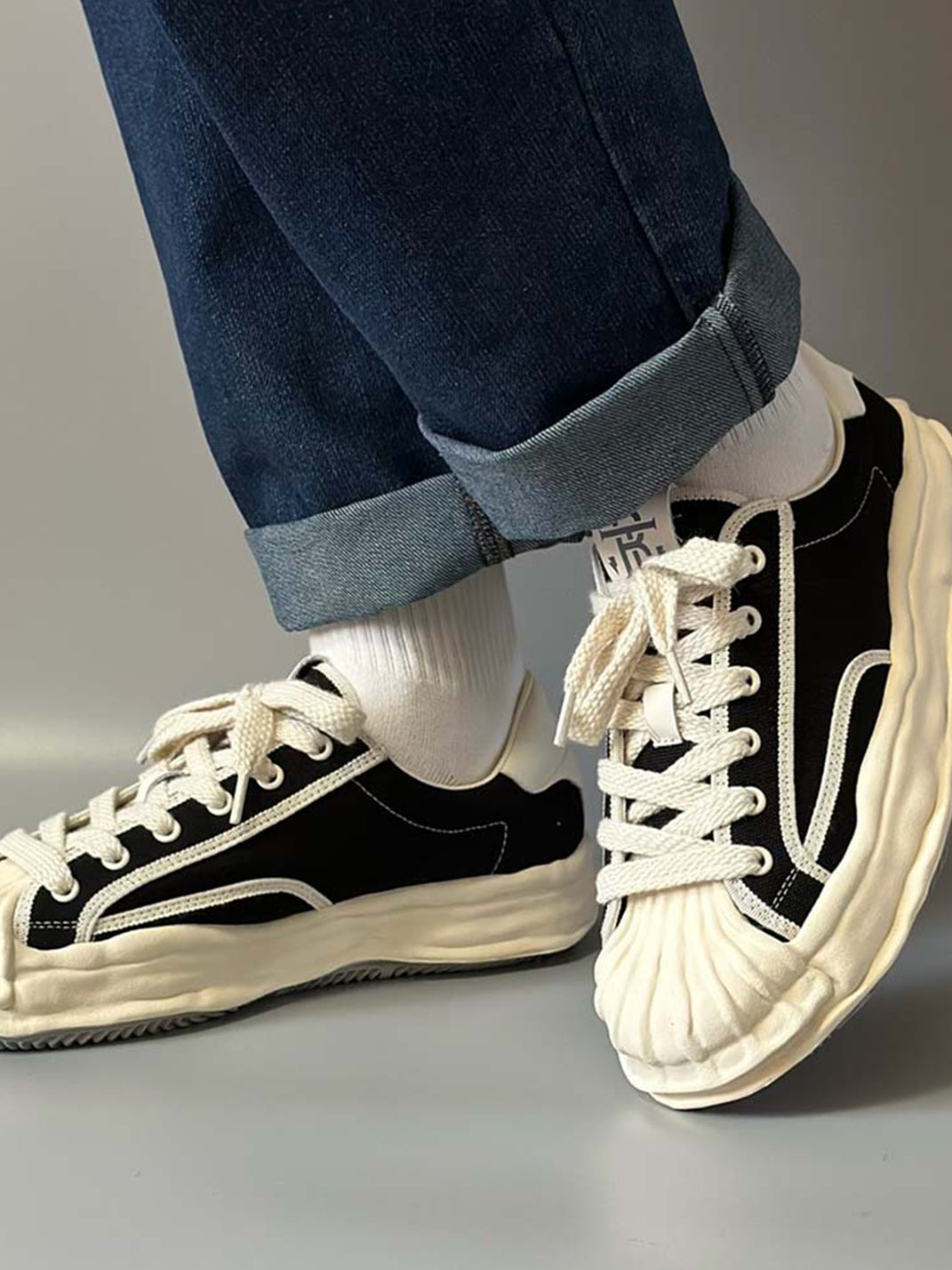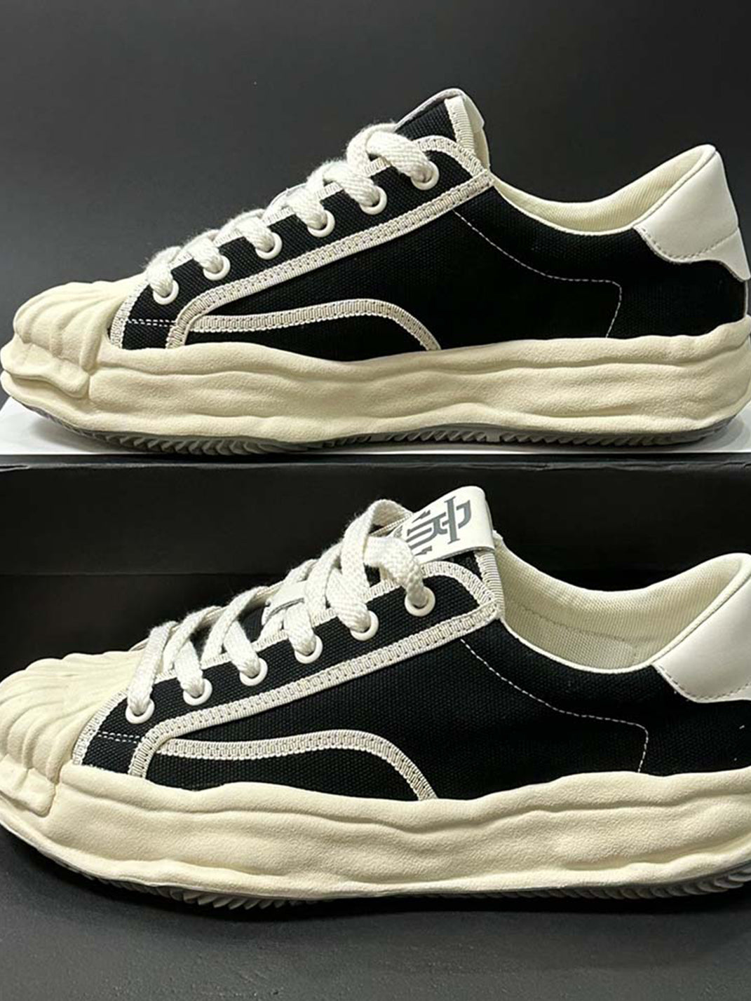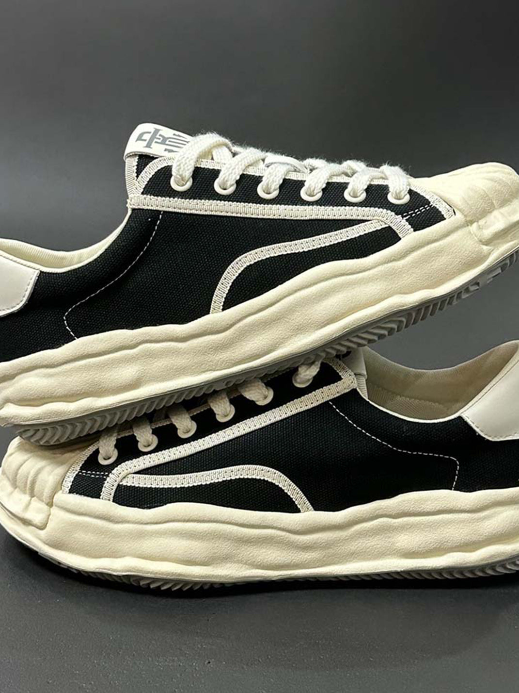 TRUMPPIPE | Black Canvas Platform Low-Top Sneakers