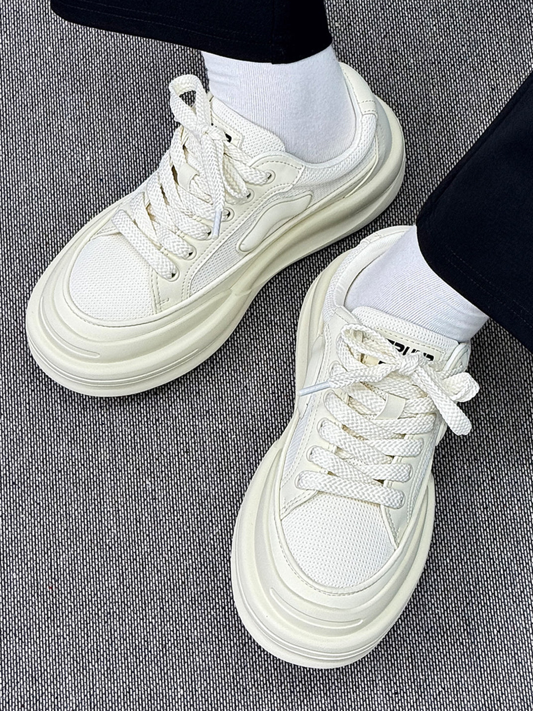 TRUMPPIPE | White Mesh Platform Low-Top Sneakers