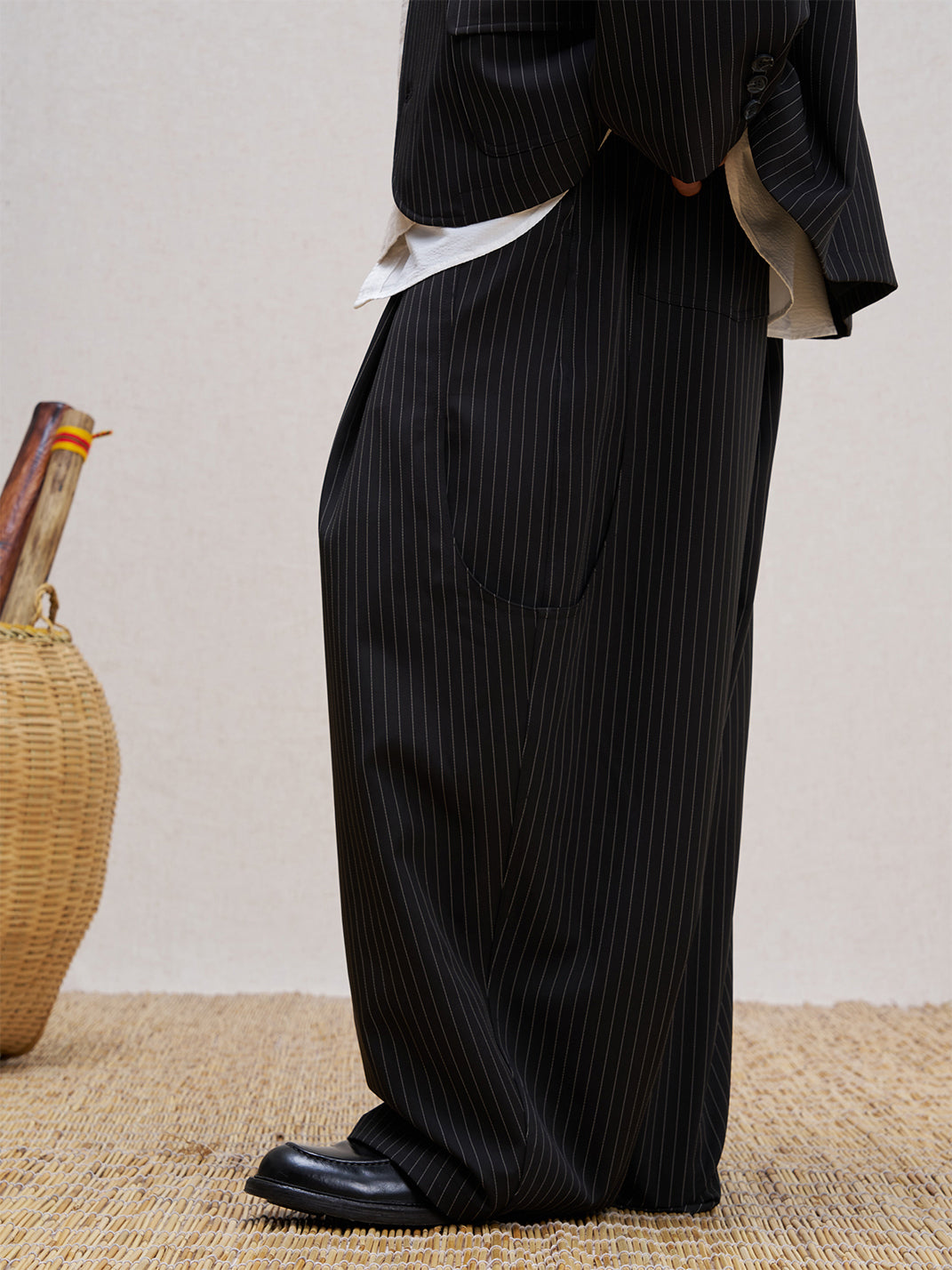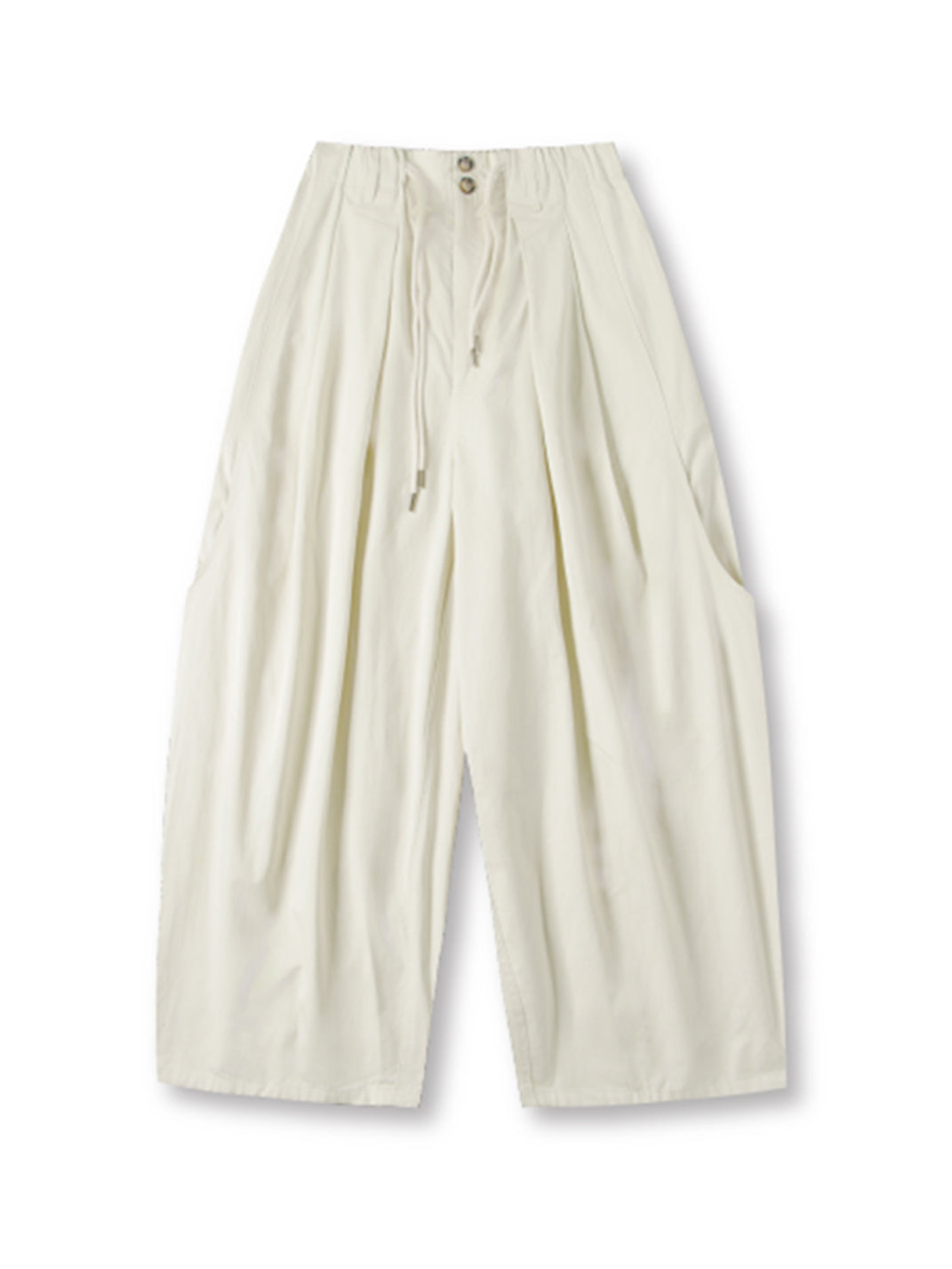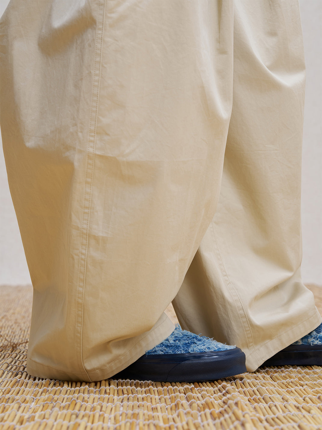 This is the 2.0 version of the brand's signature wide-leg balloon pants. The white and purple fabric, made from pure cotton-like Tencel twill, gives the balloon pants a new life and a completely different silhouette compared to last year's TR fabric, resulting in a more structured look. The black striped version features a thicker, heavier style than last year's popular blue striped version, while maintaining its easy-care characteristics.