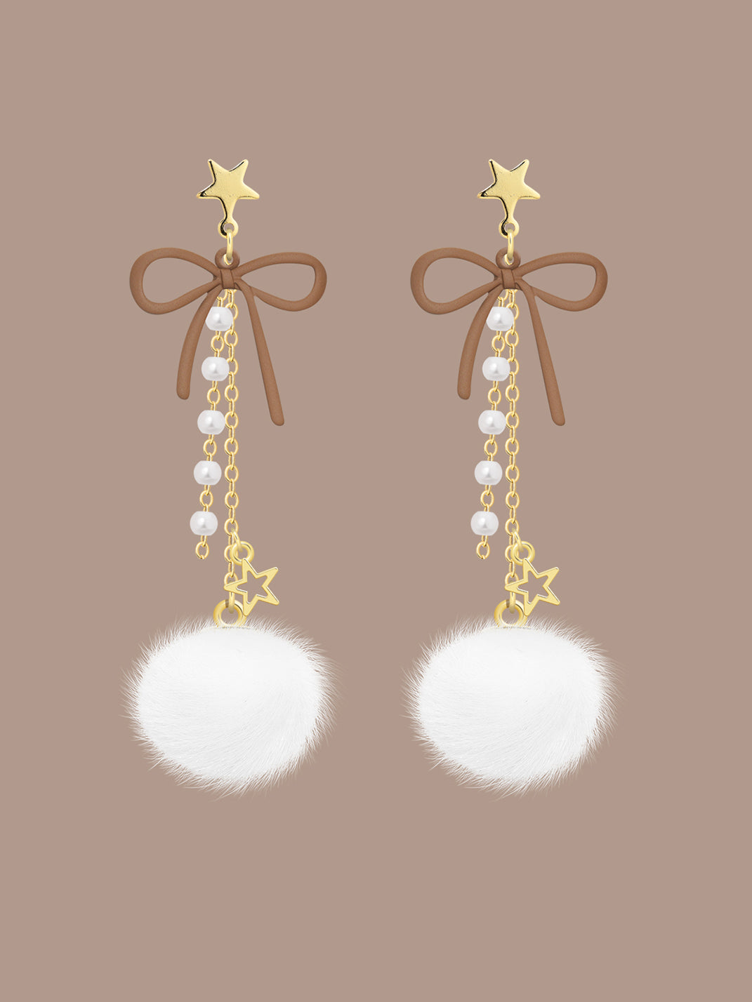 Xmas | Christmas Bow Star Pom-Pom Earrings Skip to content